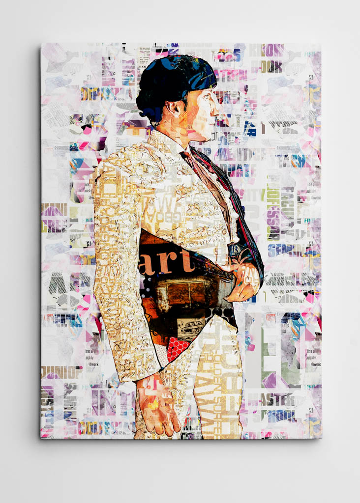 El fondo de la obra, realizado mediante collage de recortes tipográficos y periódicos, simboliza el murmullo de la prensa y el público, ese eco constante que acompaña a todo torero. Este entorno caótico enriquece la figura de David de Miranda, que se alza en el centro como un punto de calma y seguridad.