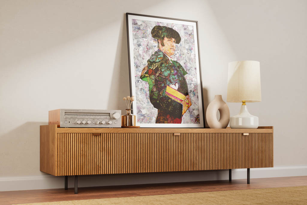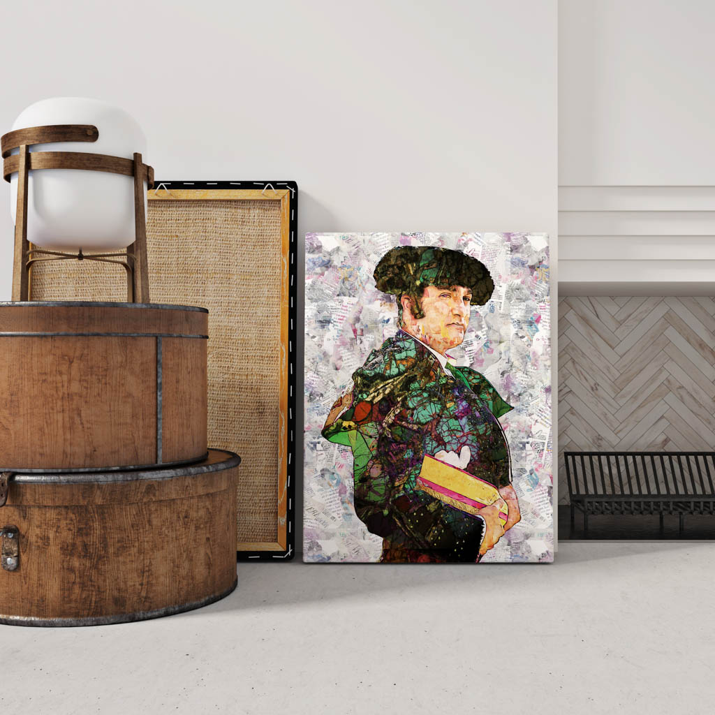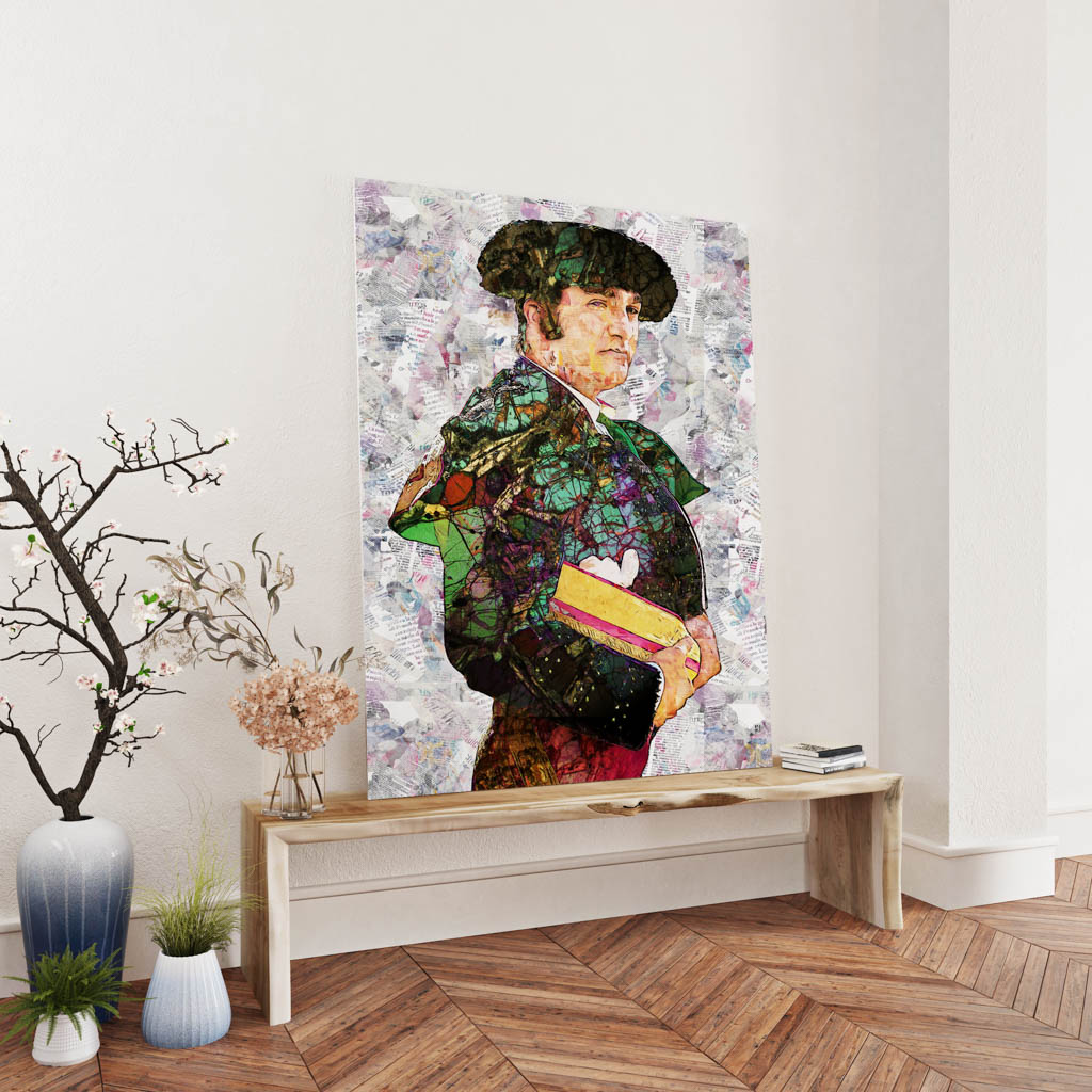 Los cuadros modernos taurinos de Morante de la Puebla están concebidos para transformar cualquier estancia en un lugar cargado de personalidad y carácter. En un salón de estilo minimalista, su presencia se convierte en un punto focal que irradia fuerza y magnetismo. En un despacho o una galería privada, la complejidad visual de los collages invita a la contemplación y al diálogo entre lo clásico y lo contemporáneo. Estas obras son, más que decoración, auténticos relatos visuales que transmiten la pasión y la grandeza de la tauromaquia.