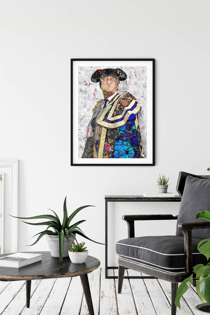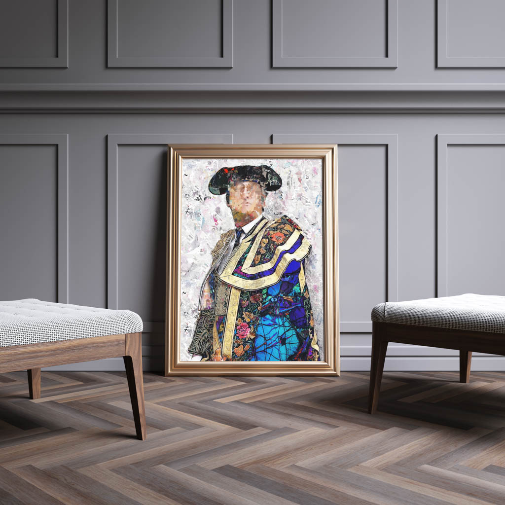 Los cuadros modernos taurinos de Morante de la Puebla están concebidos para transformar cualquier estancia en un lugar cargado de personalidad y carácter. En un salón de estilo minimalista, su presencia se convierte en un punto focal que irradia fuerza y magnetismo. En un despacho o una galería privada, la complejidad visual de los collages invita a la contemplación y al diálogo entre lo clásico y lo contemporáneo. Estas obras son, más que decoración, auténticos relatos visuales que transmiten la pasión y la grandeza de la tauromaquia.