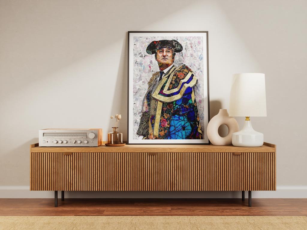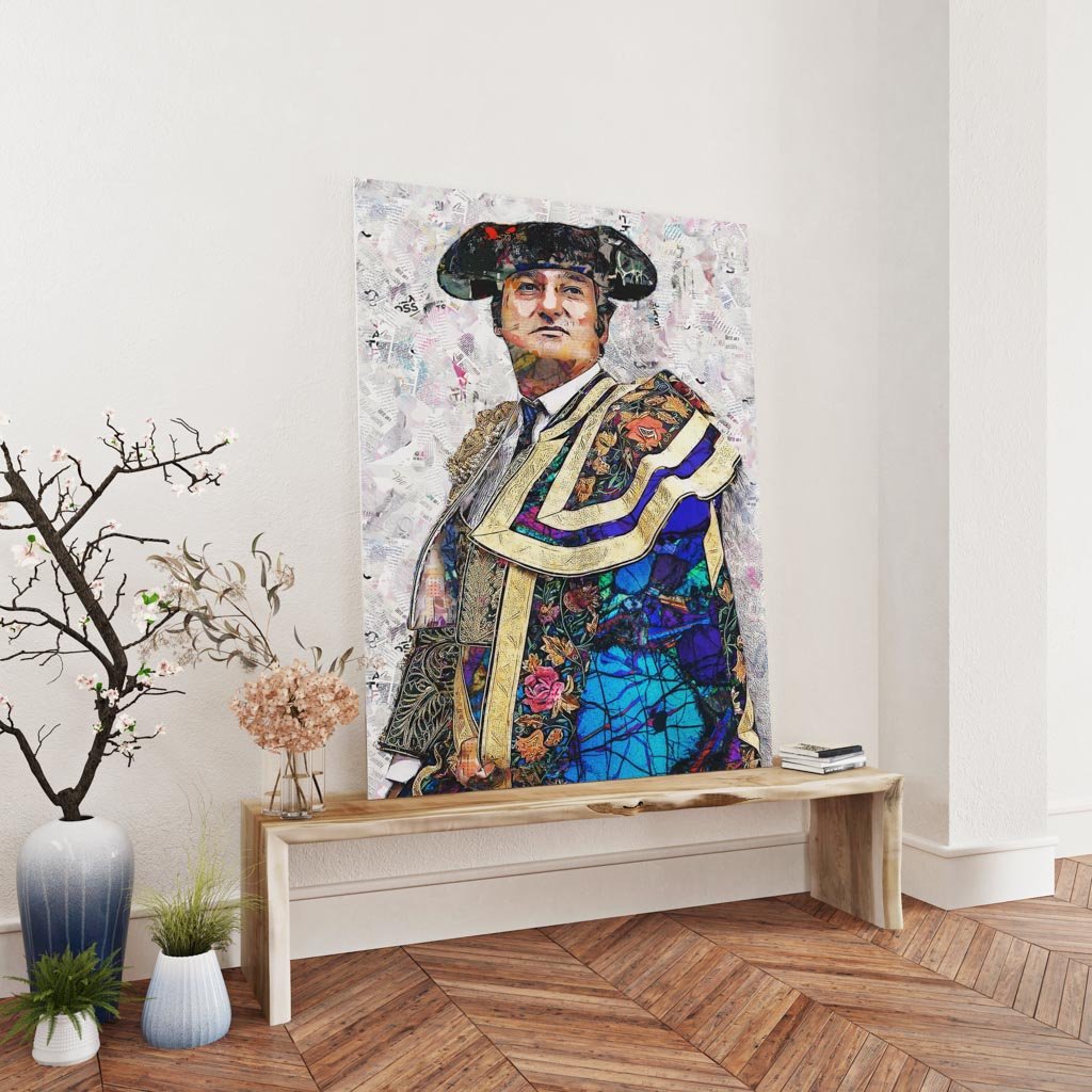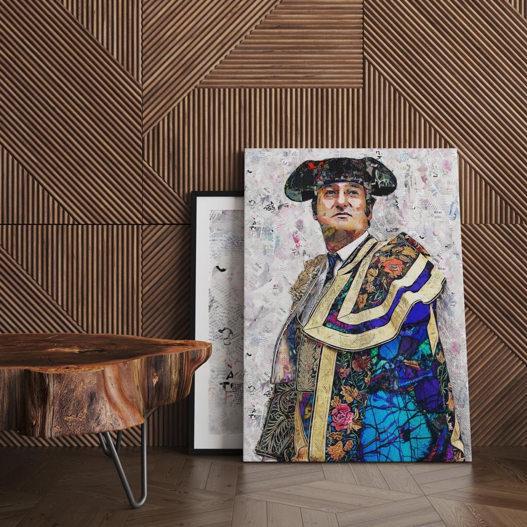 Los cuadros modernos taurinos de Morante de la Puebla están concebidos para transformar cualquier estancia en un lugar cargado de personalidad y carácter. En un salón de estilo minimalista, su presencia se convierte en un punto focal que irradia fuerza y magnetismo. En un despacho o una galería privada, la complejidad visual de los collages invita a la contemplación y al diálogo entre lo clásico y lo contemporáneo. Estas obras son, más que decoración, auténticos relatos visuales que transmiten la pasión y la grandeza de la tauromaquia.