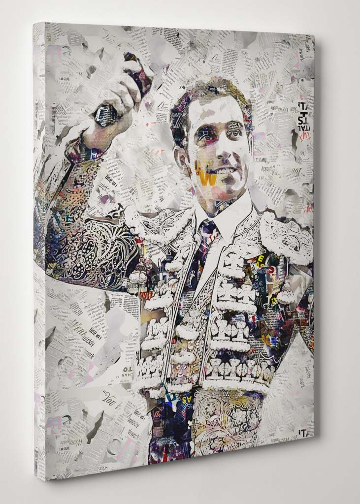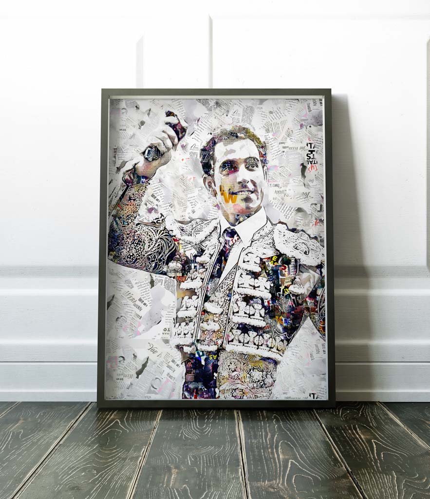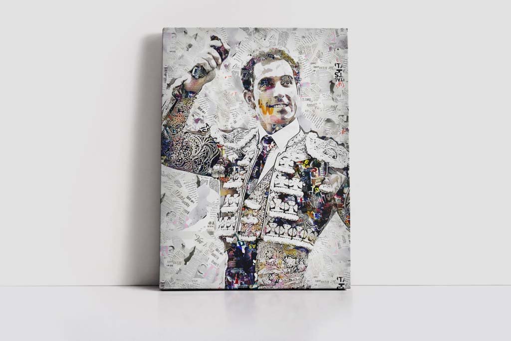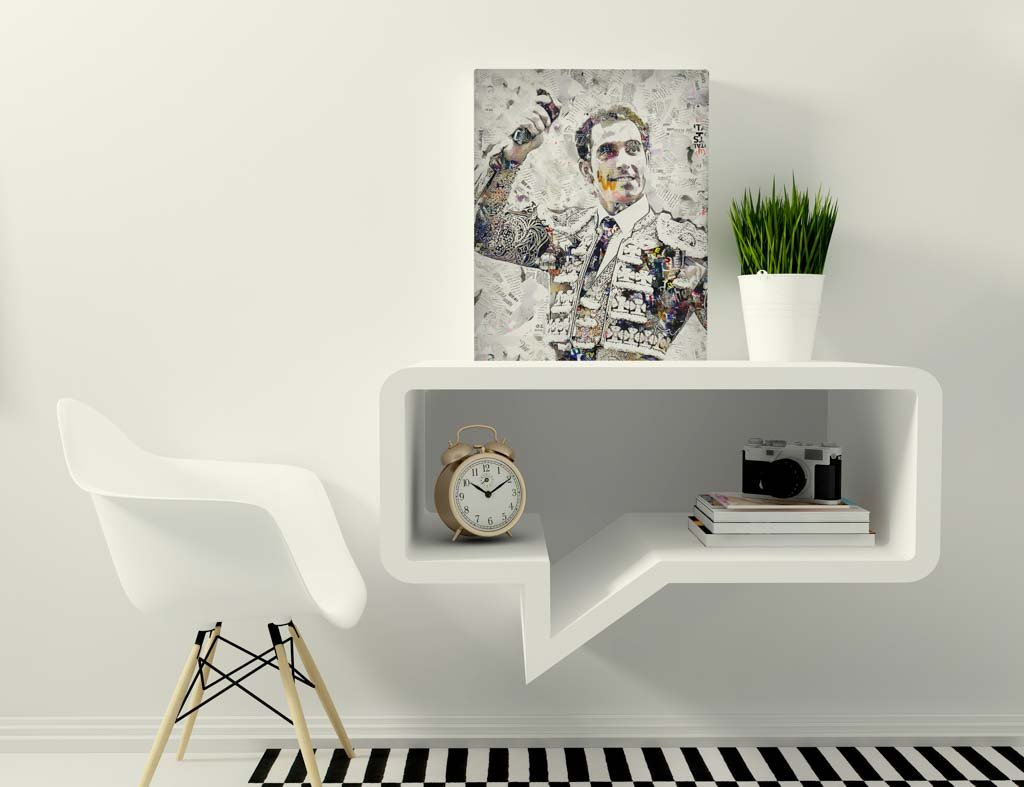 Este cuadro trasciende el mero tributo a un torero; es una celebración del instante de gloria y un testimonio visual del arte y la emoción que se respiran en la plaza. Colocado en un espacio moderno, rodeado de muebles de líneas limpias y una decoración que no compita con la intensidad de la obra, este retrato se convierte en el alma del lugar, capturando la mirada e interés de todos los que se detienen ante él.