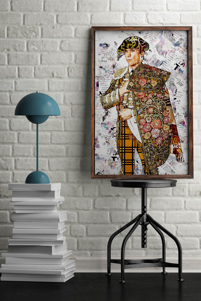 Este cuadro tiene el poder de transformar cualquier ambiente, convirtiéndolo en un rincón de contemplación y sofisticación. En un salón moderno con estilo minimalista, la riqueza visual del traje y la intensidad expresiva de Sebastián Castella se destacan como una joya en el cofre de la decoración, invitando a detenerse y reflexionar sobre la belleza y profundidad del arte taurino.